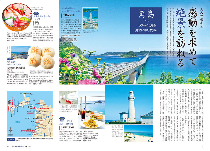 「大人の美味しい旅」では、上質な牛肉が魅力の伊万里の牛、緑あふれるワイナリーで味わう安心院(あじむ)のワインなど、食材とともに落ち着いた雰囲気で楽しめる名店を収録しています。