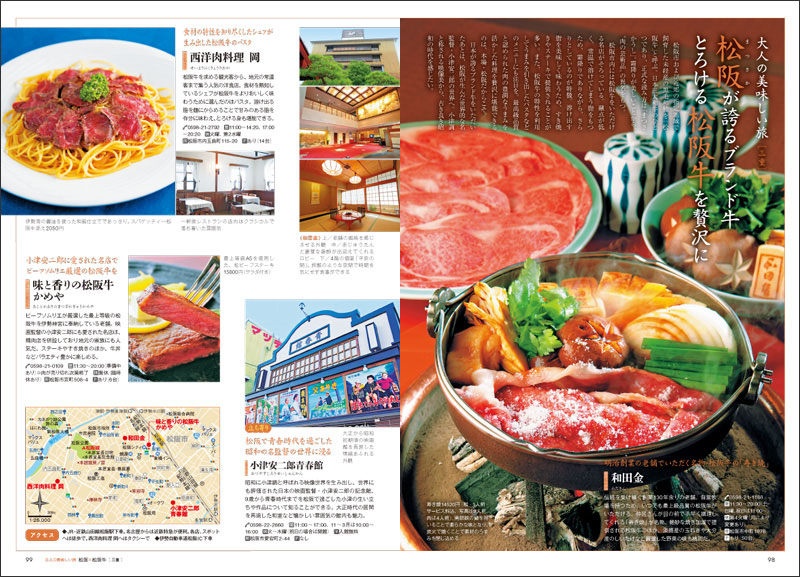 「大人の美味しい旅」では、日本を代表するブランド牛・松阪の松阪牛をはじめ、南知多の海の幸、一色のうなぎ、西尾の抹茶など、その地域ならではの食材が使われたちょっと贅沢なランチや甘味を厳選してご紹介しています。
