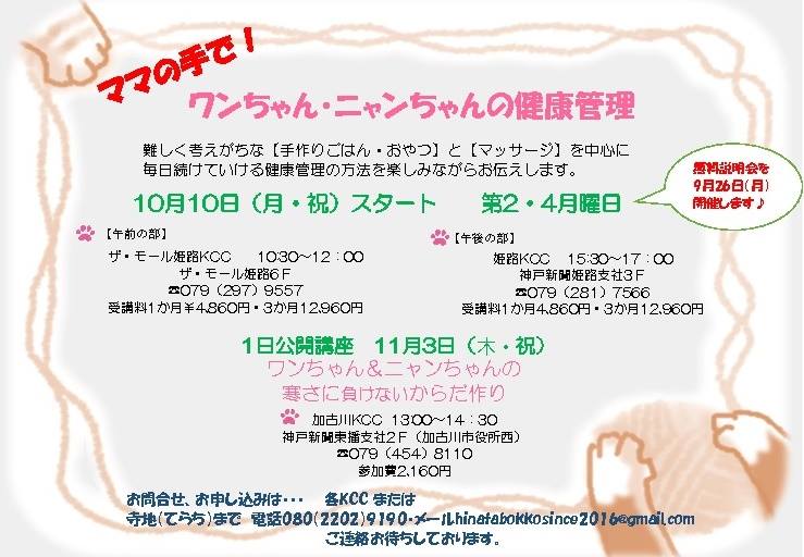 愛犬と愛猫の寒さ対策 1日で学ぶ手作り食とマッサージ~神戸新聞カルチャー教室~