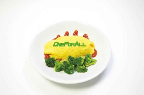 期間中は、緑谷出久の個性である「ONE FOR ALL」の文字をプリントしたオムライスに、出久の髪の毛をイメージしたブロッコリーのグリルを添えた「緑谷出久のあこがれONE FOR ALLオムライス」や、オールマイトのイメージカラーとアメリカンな見た目を表現した「オールマイトのこれを飲めば、君もヒーローになれる!!ヒーローエナジードリンク」など、目で楽しんで舌で味わっていただけるコラボメニューを提供いたします。
