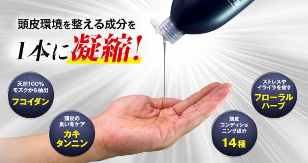 理由2:頭皮の臭いは自分では気づきにくいため、家族や周囲の人から指摘されてショックを受けた方もいるのでは?そこで、嫌な臭いをケアするカキタンニン(http://goo.gl/4i7Vtk)を配合しました。これ一本で頭皮・毛髪だけでなく、頭皮の臭いまでケアします。