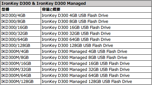 IronKey D300 & IronKey D300 Managed 機能と製品仕様: