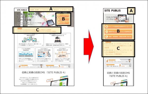 Webサイトを「ブロック」という単位の組み合わせで管理するSITE PUBLISの技術は、Webサイトにアクセスがあったデバイスに対し、構成を考慮したストレスフリーなページ表示を可能にします。