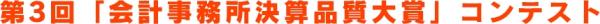 会計事務所決算品質大賞は、全国の税理士事務所の税理士や職員が、会社の決算書をいかに「早く」「正確」に作成するかを競う大会です。会計事務所としての真の実力を客観的かつ公平に競い合うコンテストです。