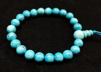 美しい空色をしたターコイズを円形に研磨し繋ぎ合わせたブレスレット。ブレスレットのトップにあしらわれた擬宝珠(ぎぼし)のような個性的なデザインがアクセントになっています。