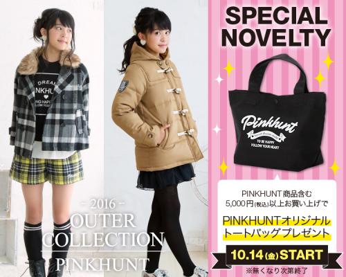 株式会社コージィコーポレーションが運営するBABYDOLL(ベビードール)・STARVATIONS(スターベイションズ)各店にて、ガールズブランドPINKHUNT(ピンクハント)が、新作アウター発売に伴い<新作アウター&ノベルティフェア>を開催します。