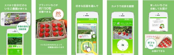 いちご農園の区画を持ったオーナーは、1区画に5株の苗を保有し、農家の方が育てる状況をライブカメラにより、24時間いつでも作物をリアルタイムで確認することができ、作物の育成状況を見ながらスマートフォンより収穫・出荷指示を出すことも可能です。