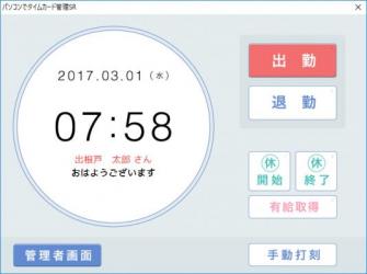 『パソコンで勤怠管理SR』は、パソコンで出勤・退勤を打刻し
