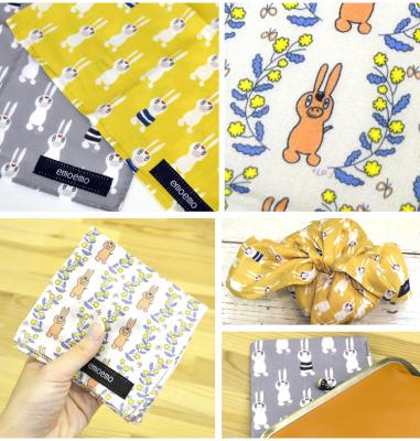 手拭きとしてはもちろん、お弁当包みや三角巾として頭に巻いたりと幅広く使える大きさです。