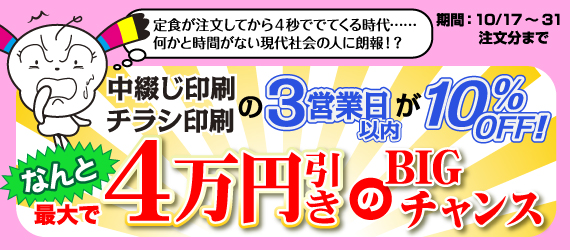 チラシ印刷/中綴じ印刷の3営業日以内10%OFF