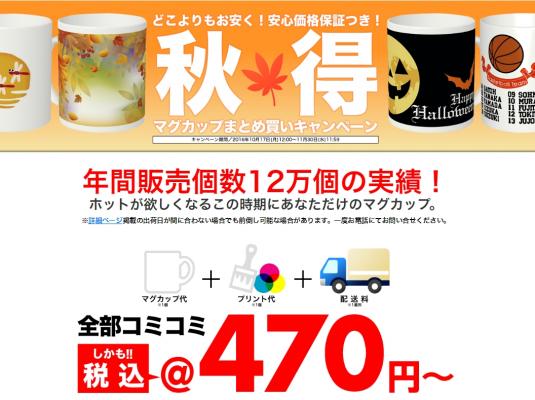 ●概要:オリジナルマグカップを1点470円(税込)から作成することができます。