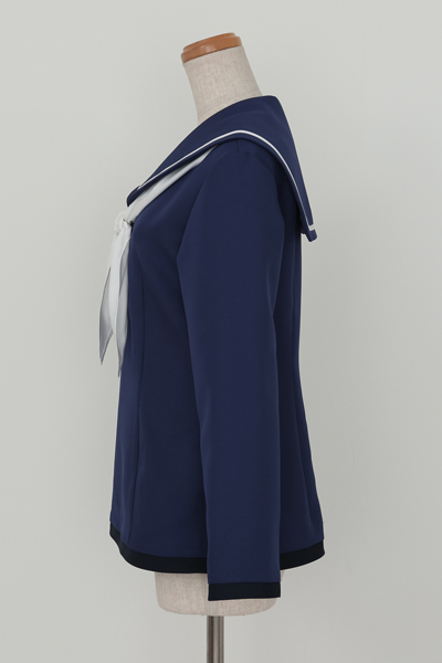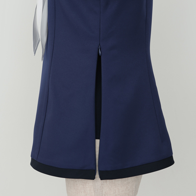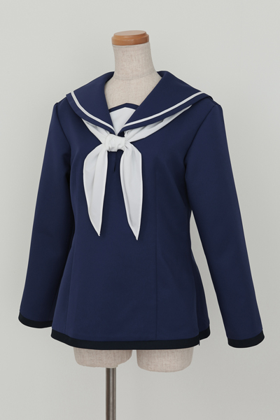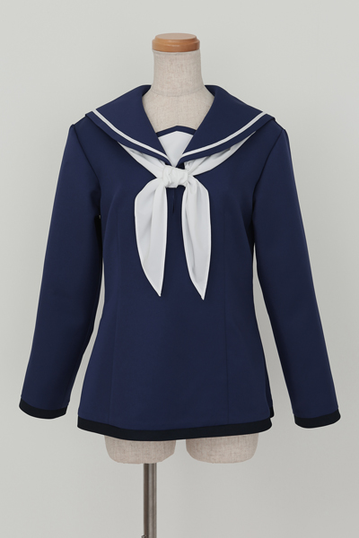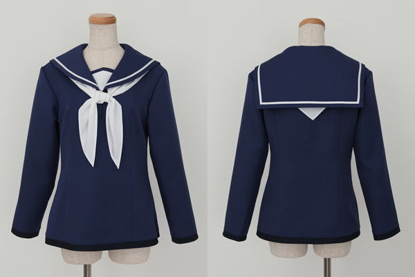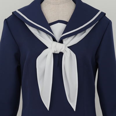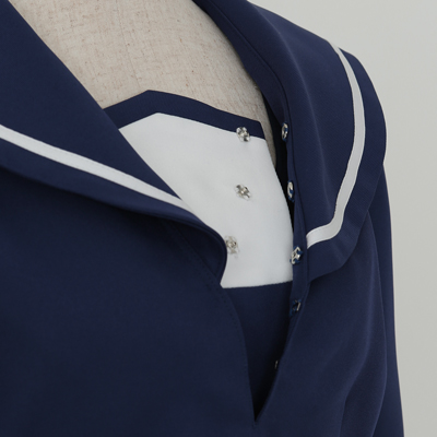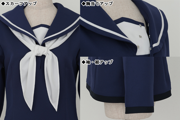胸あて・袖口・裾の濃紺ラインの幅など細部まで再現。