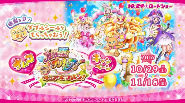 株式会社ナムコは、「魔法つかいプリキュア!」の劇場版最新作、『映画魔法つかいプリキュア!奇跡の変身!キュアモフルン!』の公開(2016年10月29日)を記念したキャンペーンを、上映館に隣接するナムコ直営アミューズメント施設(全国40カ所)で2016年10月29日~11月18日の日程で実施します。