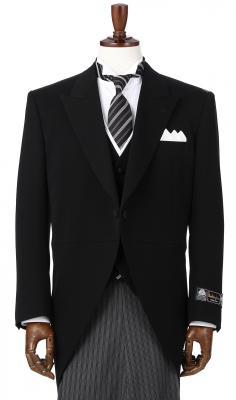 レンタルに使用するモーニングコートは27通りのサイズをご用意。身長160cm~190cm、ウエスト76cm~108cmまで対応でき、さらにウエストには前後6cm調整可能なアジャスターが付いているため、さまざまな体型のお客様にご利用していただけます。この商品は、高品質の新毛100%製品を証明する国際標準のウールマーク認定品の重厚な生地を採用し、格調高く艶やかで深い黒に仕上げた日本製です。
