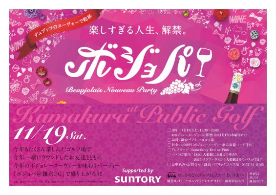 今回、当ゴルフ場にて行われる『ボジョパ』では、今年のボジョレーヌーヴォーを実際に飲んで体感して頂きながら、ソムリエによるワインセミナーを実施いたします。 その他に、今年流行ったもの・ことをテーマに盛り上がるイベントを多数企画しております!お申し込みは鎌倉パブリックゴルフ場(TEL:0467-44-8185)までご連絡くださいませ。