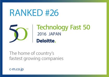 株式会社クリエイターズマッチ(本社:東京都渋谷区、代表取締役:呉京樹 ゴ ケイジュ)は、有限責任監査法人トーマツが10月19日に発表したテクノロジー・メディア・テレコミュニケーション(以下、TMT)業界の収益(売上高)に基づく成長率のランキング、第14回「デロイト トウシュ トーマツ リミテッド 日本テクノロジー Fast50」において、過去3決算期の収益(売上高)に基づく成長率115.57%を記録し、50位中26位を受賞いたしました。http://www.deloitte.com/jp/fast50/2016