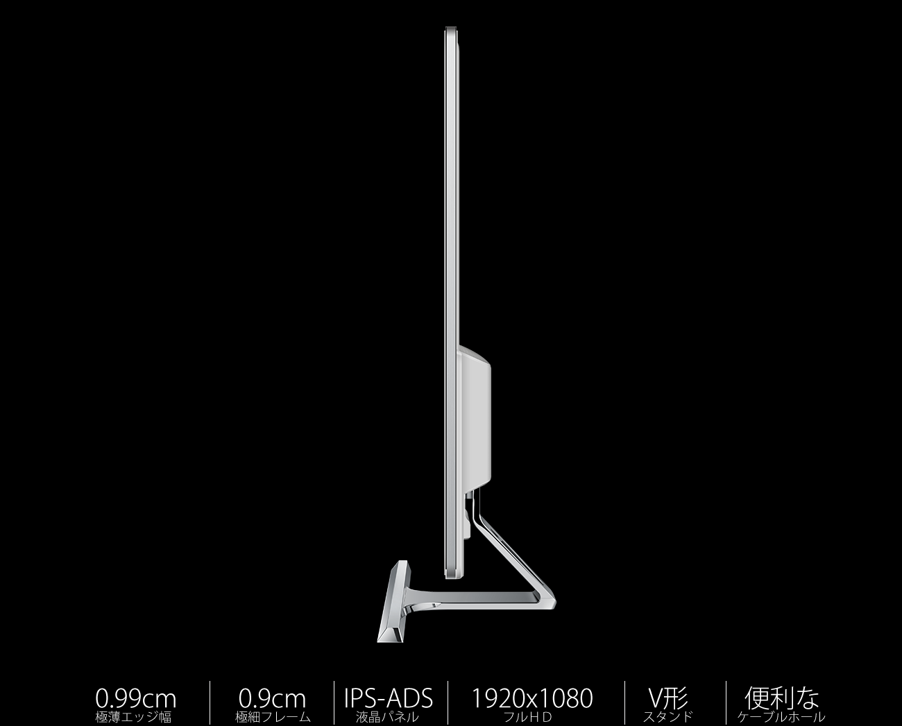 IPS-ADSパネルはあらゆる角度からも色やコントラストの変化が起きにくく、鮮明な画像を表示。高視野角上下左右178度です。スタイリッシュなウルトラスリムデザインで大人気。