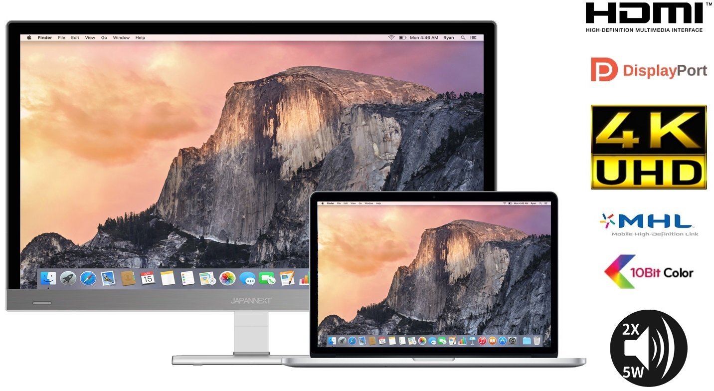 HDMI2.0/DP/DVI/VGAポート搭載。4K 60Hz対応。パネルを守る、光沢が美しいフロントグラス搭載。段差のないフラットなフレームレスディスプレイ。応答速度2.5ms、VESA対応。スピーカー搭載、HDCP 2.2対応で4K配信動画対応を堪能できます。http://japannext.net/?page_id=3659