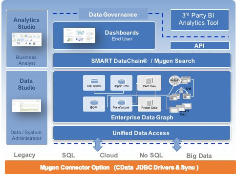 スマートインサイトは、仮想データ統合アプリケーション「Mugen」およびサーチアプリケーション「SMART/InSight G2」製品へCData JDBC DriversおよびCData Data Sync のOEM 提供を受け、60を超える対応データソースへの接続製品を「Mugenコネクターオプション」および「SMART/ InSight G2 コネクターオプション」として、2017年1月より提供開始します。