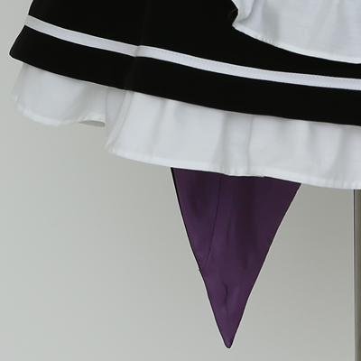 袖、燕尾付きコルセット、スカートの裏地には設定に合わせ紫色の生地を使用し、