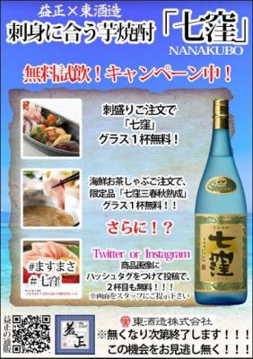 10月31日より同社が製造する本格芋焼酎「七窪(ななくぼ)」の無料試飲キャンペーンを
