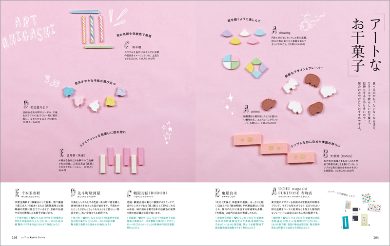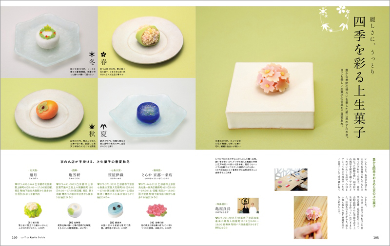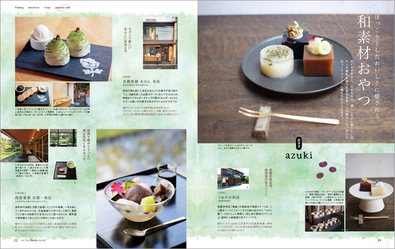 思わず食べてみたくなるキュートで上品なスイーツの数々。すぐに京都へ旅立ちたくなる誌面です。