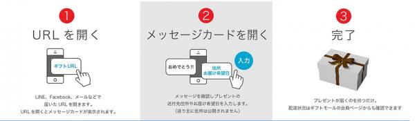 たった3分で、いつでも「ダレ」でも好きな時に「スグ」にプレゼントを贈ることができます。