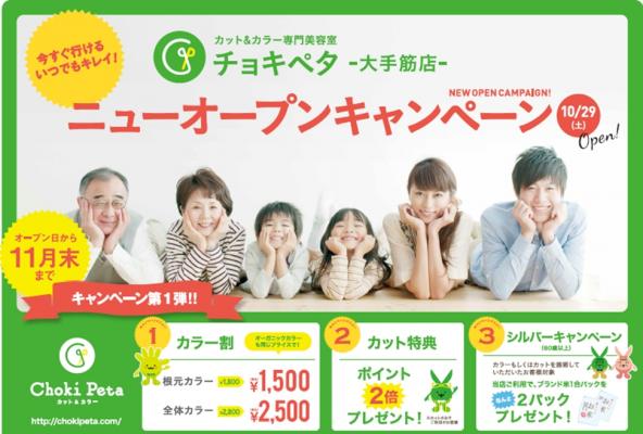 美容室チェーンを展開する 株式会社 アルテ サロン ホールディングス(神奈川県横浜市中区/代表取締役会長吉原 直樹)(http://www.arte-hd.com/)の傘下である 株式会社ニューヨーク・ニューヨーク(京都市伏見区/代表取締役社長 吉村 栄義)(http://www.nyny.co.jp/)は、2016年10月29日(土)「ChokiPeta 大手筋店」をオープンします。 「ChokiPeta 大手筋店」は、“ChokiPeta“ブランドとしては初の関西出店となります。