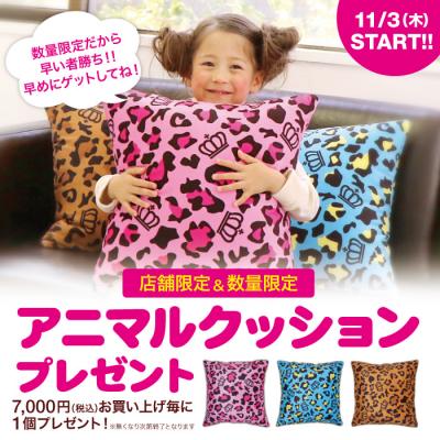 ■7,000円(税込)以上お買い上げごとにオリジナル『アニマルクッション』1個プレゼント