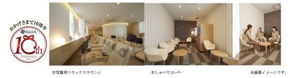 この度、12階女性専用フロアをリフレッシュし、「おしゃべりコーナー」を新設しました。女性専用リラックスラウンジのインテリアをリニューアルし、よりリラックスできる雰囲気へと生まれ変わりました。また、女性ロッカー内には新たに「おしゃべりコーナー」を設け、お風呂上がりに女性同士で気兼ねなくおしゃべりできるスペースができました。女性のためのより上質で快適な寛ぎ空間が誕生しました。