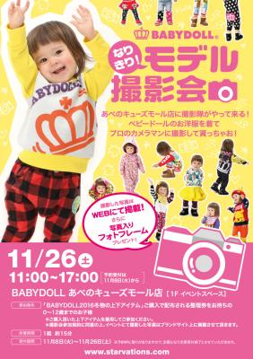 株式会社コージィコーポレーションが運営するベビー・キッズ服ブランドBABYDOLL(ベビードール)が、BABYDOLLあべのキューズモール店にて、「なりきり!モデル撮影会」を開催します。