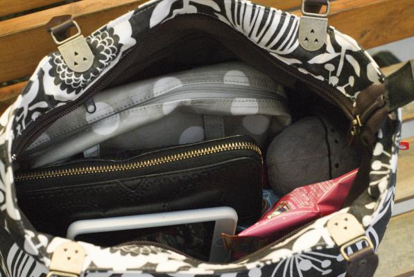 底マチが広めなので荷物が安定し、チャックを閉めておけば中身も見えません。2つの内ポケットは貴重品も安心して入れられるチャック付きポケットと、さっと入れられるチャックなしポケットで使いやすさアップ。