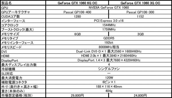 2モデルとも、GPUにはPascalアーキテクチャを採用し、16nm FinFETプロセスで製造するGP106コアを採用しますが、そのCUDAコア数は6GB版のGP106-400が1280基なのに対し、3GB版のGP106-300は1152基の構成を採っています。GPUコアのベースクロックは1544MHz、GPUブースト時の最大クロックは1759MHzと共通で、メモリも8008MHz相当で動作するGDDR5メモリを採用。ショート基板とシングルファンの組み合わせにより、カード長は188mmに抑えながらも、ARMOR 2X搭載モデル同等のグラフィックス性能を実現しています。本体重量は484gで、最新ゲームタイトルも楽しめる小型・軽量のグラフィックス環境を構築することが可能になります。