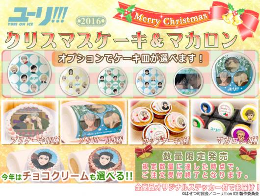 「プリロール」を運営する株式会社栄通(本社:東京都八王子市)は、TVアニメ『ユーリ!!! on ICE』のクリスマス限定デザインのプリントケーキ&マカロンを2016年11月2日(水)より予約受付開始いたしました。