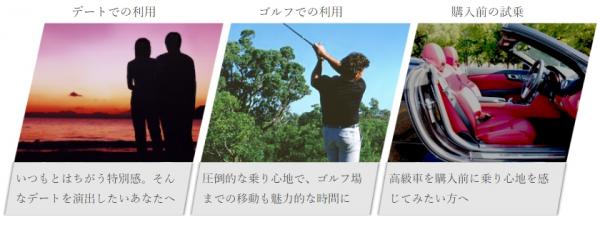 大切な人と特別な時間を過ごしたい、高級車を買う前に一度レンタルで試乗してみたい、ちょっと空いた時間でドライビングを楽しみたい、長期休みに高級車で旅行したい、といった様々なお客様のご要望にお応えできるレンタル形式となっております。