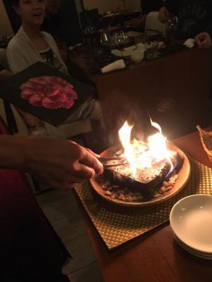 特に人気が高いのが、炎がでるまでアツアツに熱した溶岩石の上で肉を焼き上げる溶岩焼き付のコースです。