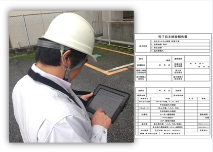 点検録は建設現場でタブレット端末を使って点検業務の各種帳票記入ができるクラウドサービスです。記入された帳票は、関係者間で即時共有できて「いつ、どこで、誰が、どのように」点検したか、記録を効率良く残すことができます。
