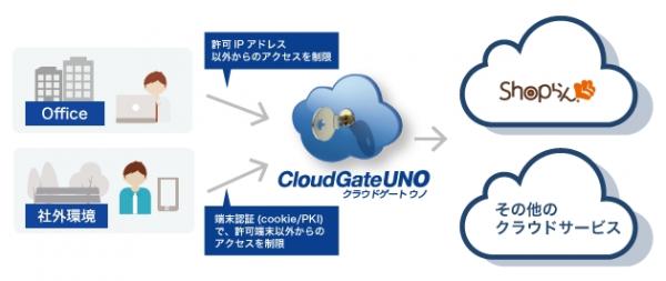 今回の連携により、ご利用者様は「Shopらん/店舗matic」へログインする際にCloudGate UNOが豊富に用意している各種認証機能をご利用することが可能になります。クライアント証明書による端末認証や、ユーザーのログインログを参照できるアクセス履歴、条件を設定できる二要素認証による認証強化等を活用し、「Shopらん/店舗matic」上に保管されている店舗の運営情報をよりセキュアに管理・運用することが実現出来ます。
