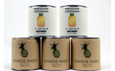 「サンライズ・スイート」と「ゴールドバレル」は、日本一のパイン村を掲げる東村が、生食のパインの出荷時期を終えた10月以降もおいしいパインを味わってもらおうと開発したオリジナルパイン缶詰です。
