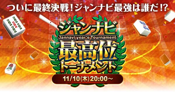 株式会社ウインライトが運営する本格オンライン麻雀アプリ「ジャンナビ」は11月10日20時から、ジャンナビのイベントで勝ち進んできた実力派4人のプレイヤーが激突するジャンナビ最高位トーナメントの決勝が行われ、この模様をライブ配信いたします。