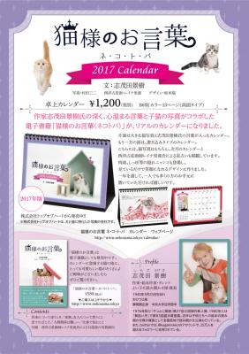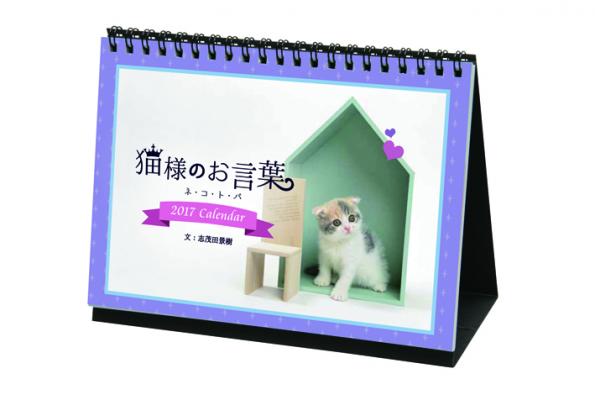 犬猫に特化した写真撮影及びストックフォトサービスを提供する株式会社トップオブハート(所在地:東京都新宿区)は、2016年11月11日より、作家・ 志茂田景樹氏とのコラボによる2017年版『猫様のお言葉 ネ・コ・ト・バ』卓上カレンダーの販売を開始しました。一年を通していつも側にあるものだからこそ、大人可愛いデザインで、お部屋のインテリアとしてもお洒落にご利用いただけます。上手くいく日も、いかない日も、子猫たちに癒され、 励まされ、隠れニャンコや星占いで、使って楽しい宝箱のようなカレンダーです。
