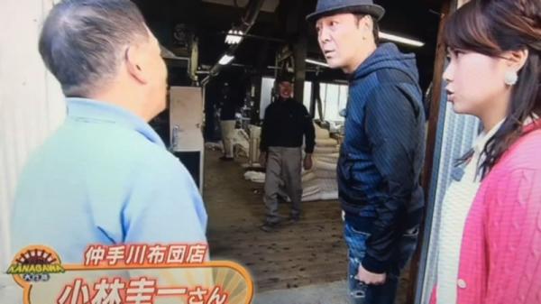 当日は製造場所である『仲手川布団店』にタレントのデビット伊藤さんと久本真菜アナウンサー(tvk)が来られ、製綿工場から財布専用ふとんの制作までの工程をご紹介されました。