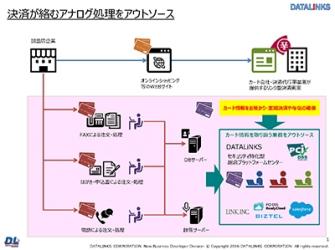 データリンクスが2017年2月から提供するこのサービスは、PCI DSS(※)準拠のための時間・コスト・ノウハウに精通した人材が不足している等の課題を抱えた企業向けのBPOサービスです。