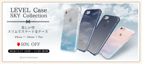 株式会社 KODAWARIが運営するオンラインサイト「SHOWCASE Online」にて、11月17日からタイムセールを開催いたします。今回対象のLEVEL Case Sky Collection for iPhone 7/7Plusは、美しい空をイメージしたデザインケースです。半透明のためiPhoneの色により光景が変化し、様々な顔を持ち日々の生活を楽しませてくれます。進化した独自Rib構造により、もしiPhoneを落としてしまった時などに衝撃をエアーポケットが分散し、iPhoneをしっかりと守ってくれます。