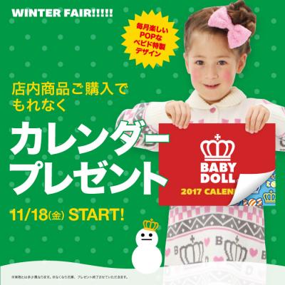 店内商品ご購入で、もれなくオリジナルデザイン【BABYDOLL2017年カレンダー】をプレゼント!