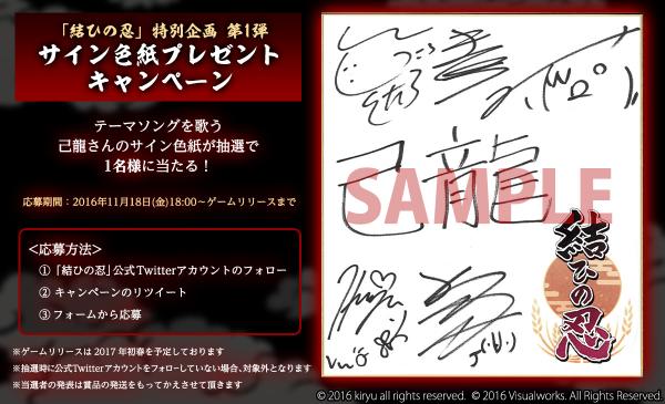 テーマソングと告知動画の公開を記念して、テーマソングを歌う「己龍」さん直筆サイン色紙プレゼントキャンペーンを開始致しました。