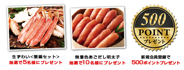 (2)販売商品のズワイガニや明太子が15名様に当たる!!