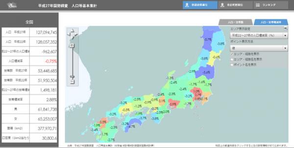 ウイングアーク1st株式会社(本社:東京都渋谷区、代表取締役社長CEO:内野弘幸)は、総務省統計局が10月26日に発表した「平成27年国勢調査 人口等基本集計」の結果を、手軽にデータを閲覧できるWebサービス「3rd Party Data Gallery On Demand(以下3PDG On Demand)」のコンテンツとして無償提供することを、本日発表します。