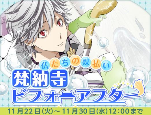 株式会社ビジュアルワークスは、「なむあみだ仏っ!」のイベント「仏たちの煤払い~梵納寺ビフォーアフター~」を2016年11月22日(火)12:00より配信開始いたします。