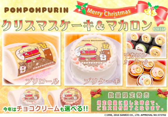 「プリロール」を運営する株式会社栄通(本社:東京都八王子市)は、人気キャラクター『ポムポムプリン』のクリスマス限定デザインのプリントケーキ&マカロンを2016年11月14日(月)より予約受付開始いたしました。